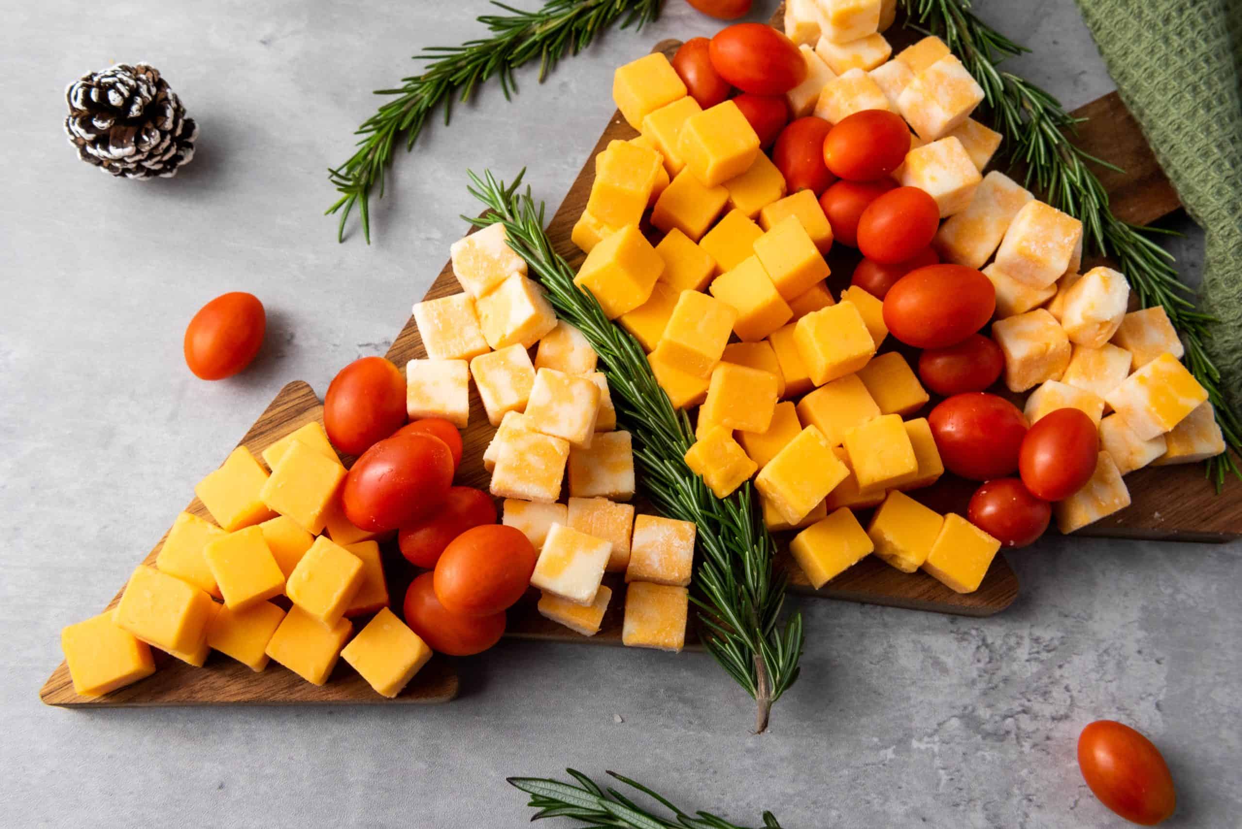 - Place fresh rosemary sprigs beneath the Colby Jack, giving the tree a touch of greenery.
