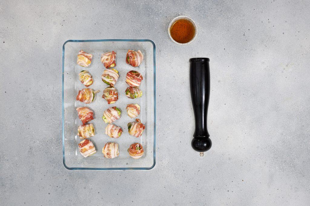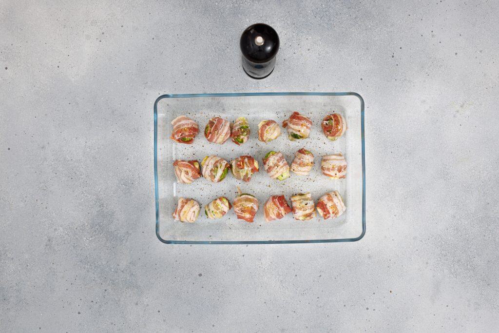 - Wrap with Bacon – Wrap each sprout in a slice of bacon and secure with a toothpick.