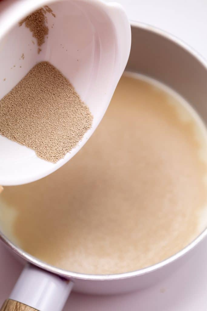Warm the milk until just lukewarm (not hot), then stir in the dry yeast and granulated sugar. Let it sit in a warm place for 10 minutes until foamy.