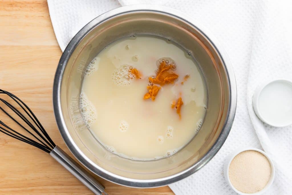 - In a medium-size bowl, add the pumpkin puree, oat milk, coconut oil, and sugar. Whisk until well combined.
