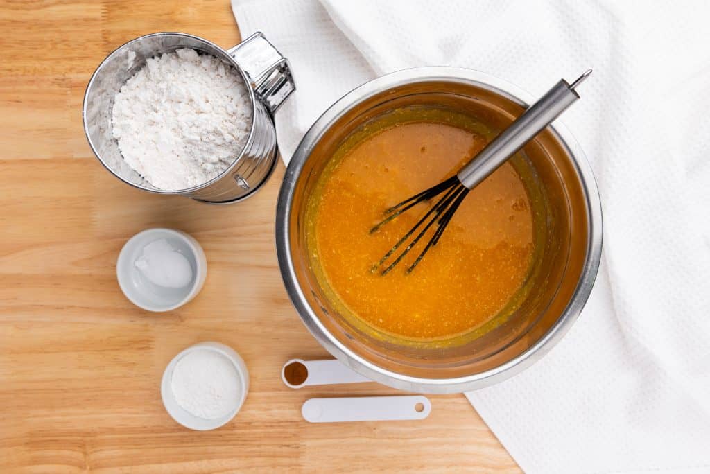 - Make the wet mixture – In a medium bowl, whisk together pumpkin puree, oat milk, coconut oil, and sugar until fully combined.